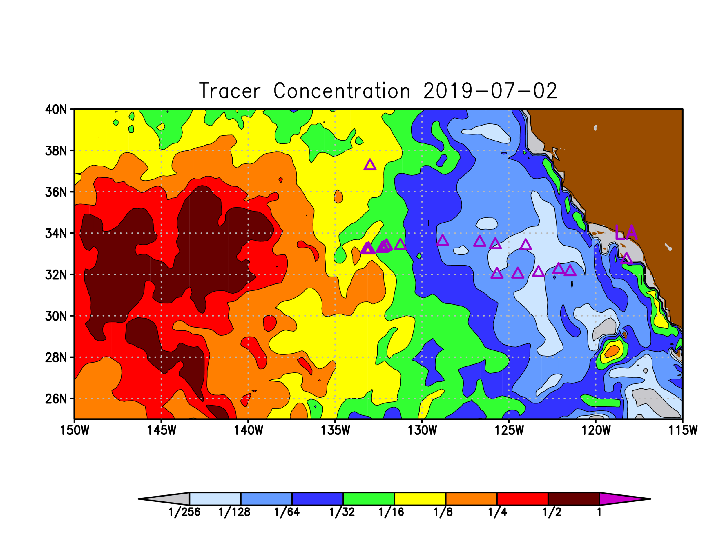 In order to calibrate sampling methods, we will trawl in the same location with the suitcase manta (used in 2014 due to a breakdown of our standard manta used in other years), and the regular manta to be able to quantify any differences due to the small size difference of the two mantas. Next we will do as many trawls from the different concentration zones that correspond to different colors on the Maximenko/Hafner map as possible, also in order to help validate the model. We will also revisit four of the stations that we did on our 2018 Myctophid Project as the current map shows that the concentrations now are significantly different than the concentrations then.