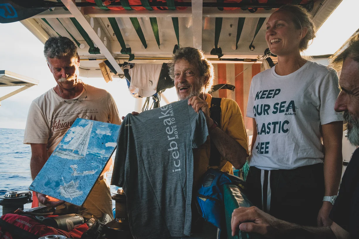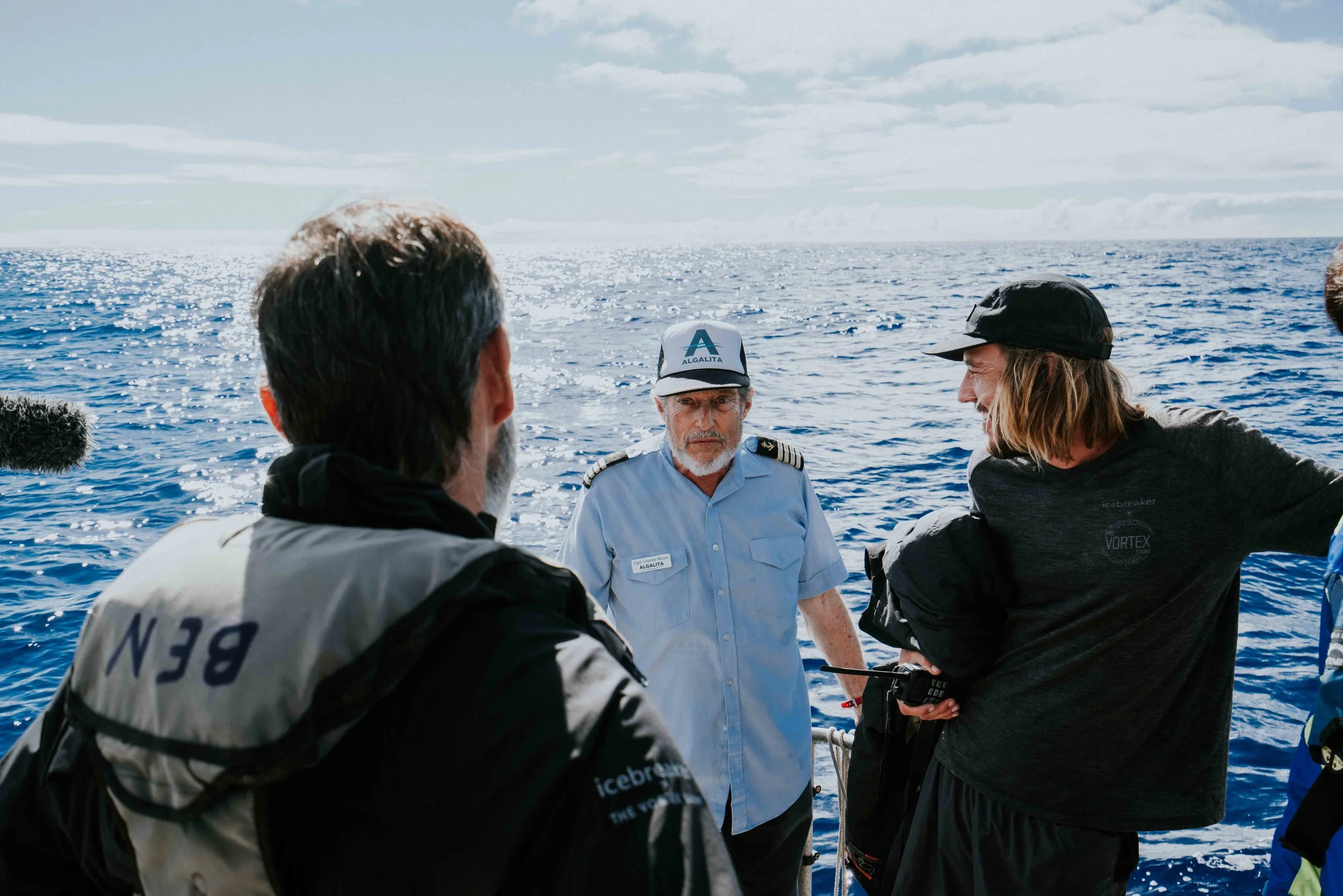 Meeting up with The Vortex Swim Team mid-ocean was a fantastic experience. Not only did we exchange thoughts and information, they came to our aid. The ORV Alguita experienced a broken engine mount and we were unable to repair it with our equipment on board. It was our good fortune they had the necessary equipment to repair it for us……..Photos in the column at right are additional images from the Expedition.