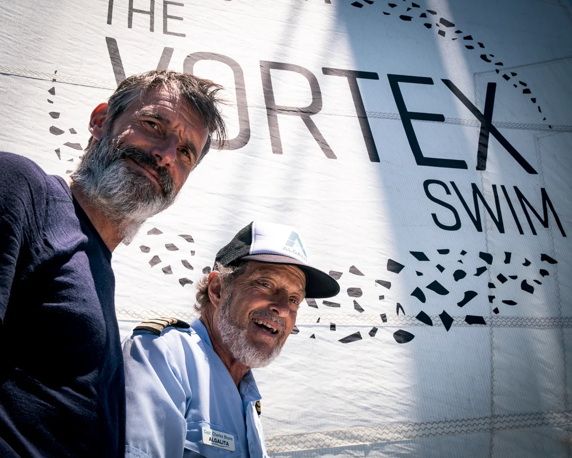 CAPTAIN MOORE AND BEN LECOMPTE OF THE VORTEX SWIM TEAM (IAMOCEAN) TAKE A “BUDDY” SWIM TOGETHER